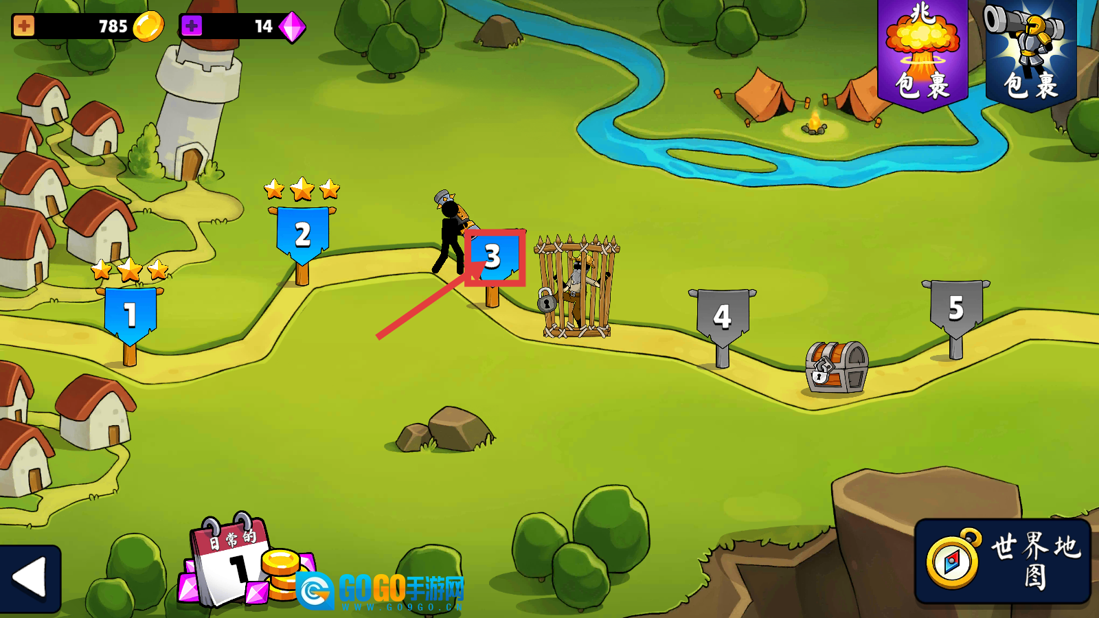 1、选择【3】号关卡开启挑战,在地图里推进到该关卡位置,就能展开战斗冒险了。