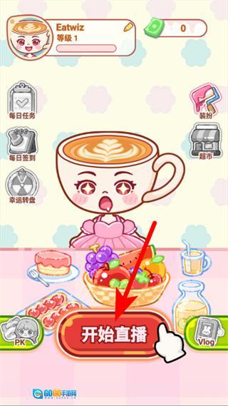 1、在主界面点击开始直播按钮,进入美食直播的准备与开播流程。