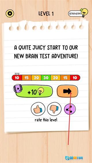 4、关卡完成后出现结算界面,点击橙色的箭头按钮,即可进入下一个关卡,继续参与新的脑力测试冒险任务。
