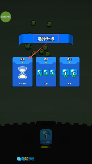 4、升级能力:在英雄升级界面,点击“选择升级”按钮,从加速、武器、盾牌等选项中选择一个进行能力提升。