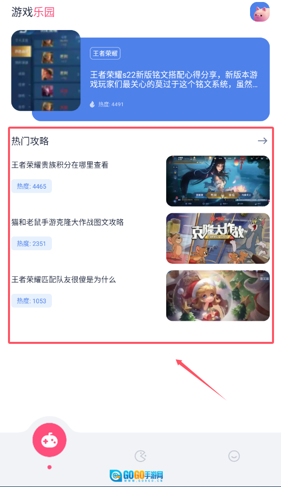 3、可以看到游戏的实时动态,可以将游戏攻略分享给他人,查看最新更新。