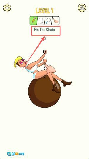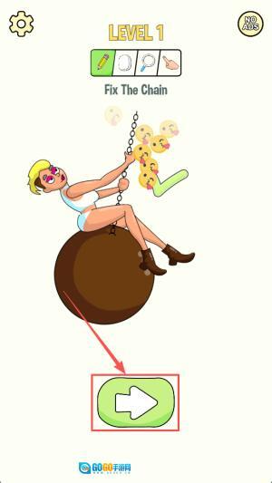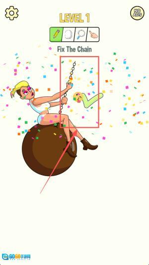 2、接着,在“LEVEL1”界面观察链条断裂位置,用手指拖动链节对准缺口。