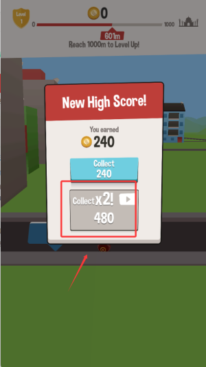 2、选择观看激励视频可获得双倍金币奖励,这些金币可用于解锁新球棒与场地。
