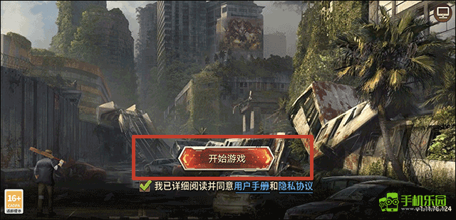 1、启动游戏后,在标题界面勾选“我已详细阅读并同意用户手册和隐私协议”,然后找到并点击“开始游戏”选项;