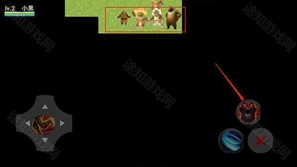 2、然后我们扮演熊二,通过如图的虚拟按键移动;