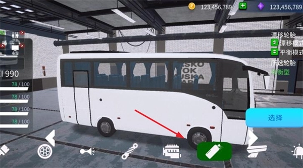 1、进人游戏后,可以进入车库之中,选择一辆巴士。