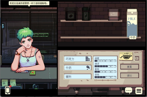 2、亲手改变故事的分支。改变情节走向的不是对话选项,而是玩家为顾客冲调的暖饮。