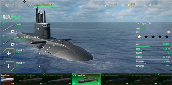 100式核潜艇以其庞大的体型和厚重的装甲著称,国产核潜艇,这艘潜艇在航速方面表现平平,潜行速度仅有不到11节,但其血量高得惊人,超过30万,是当前游戏中最能抗的潜艇之一。然而,它的氧气含量仅为78,续航能力较弱,需要玩家灵活掌控战斗节奏。在武装配置方面,它配备了多达五个导弹卡槽和一个鱼雷卡槽,特别是其搭载的东风17导弹,使得它在火力输出上极具震慑力。总的来看,这艘潜艇价格不菲,但火力强大、血量夸张,适合追求极致输出和抗压能力的氪金玩家或高强度肝帝。如果预算有限,也可以退而求其次,选择火力和性能较为均衡的台风号作为过渡。