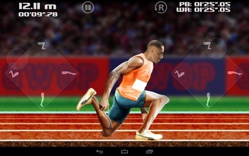 玩家需要通过键盘上的Q、W、0、P四个键操控运动员的大腿和小腿肌肉来完成百米赛跑。