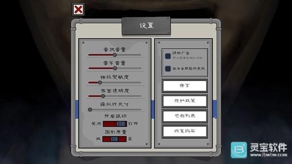 进入设置,可以设置音乐、相机灵敏度等游戏参数。
