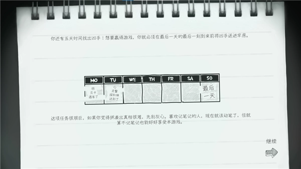 你有五天时间来侦破这起凶杀案,每一次行动都会耗费时间。务必审慎选择,有两个完全不同的结局在等待着你!