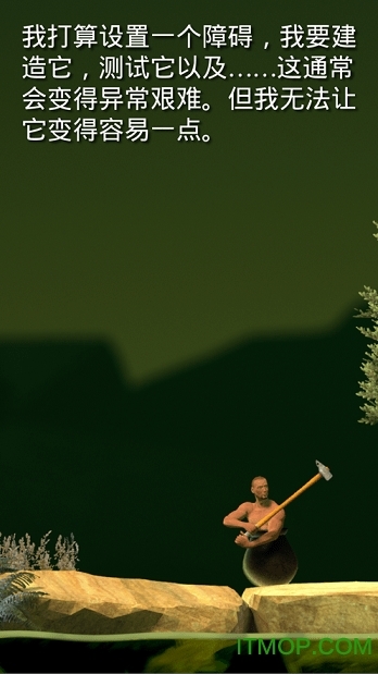 玩家的目标是操控一个坐在类似缸里的角色,通过持续使用一把榔头向上攀爬。游戏操作十分简单,不过班尼福特这款手机游戏里那看似怪异的引擎,加上不知何时会冒出的Bug,随时都可能让玩家心态炸裂。要是游戏中榔头突然变成“石中剑”,那玩家就只能重新开始游戏了!