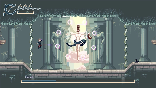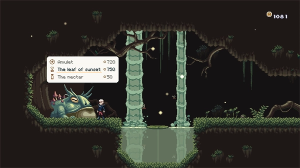 像素画质不错,一旦你走到离开第一个区域,就能欣赏到一些很棒的风景。不过,起始区域看起来有些单调。剧情上是因为这里是神庙周围的原始区域,随着你离开寺庙,会接触到一个更加多彩的世界,但这也意味着你从一开始就被困在游戏中视觉上最不吸引人的区域,没有其他选择,直到解锁新地点。