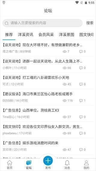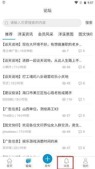 2、在“论坛”页面可以查看洋溪的最新资讯。