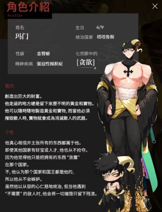 个性:他是地狱七大国王中最凶残的。