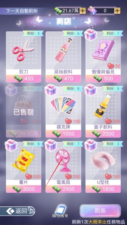 3、最后去商店购买各种礼物来获得更多的好感,快速提高好感非常不错哦。