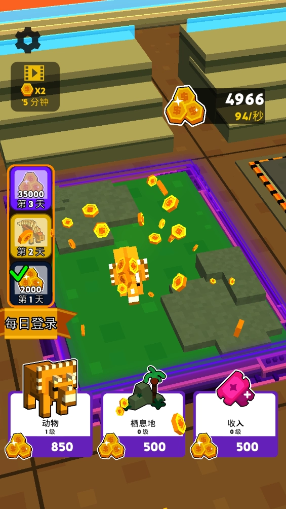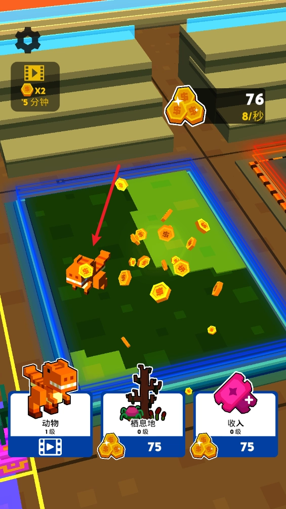 3、合理分配自己的金币资源,是用来增加恐龙数量,还是解锁新的场地,这一切都由你决定。