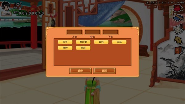 前期可以借助舞蹈课与育幼堂来提升自身的魅力和气质,舞蹈课所增强的舞蹈属性,对第一年重阳节拿下舞林争霸第一名也有帮助,这对于提高声望而言是个不错的途径。
