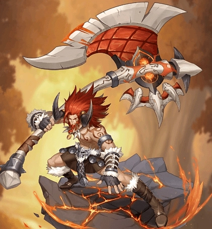 对敌方全体造成物理伤害,有概率给目标附加[战斧破甲]状态。每给1名敌方单位附加[战斧破甲],自身就获得1层[蛮王体魄]。