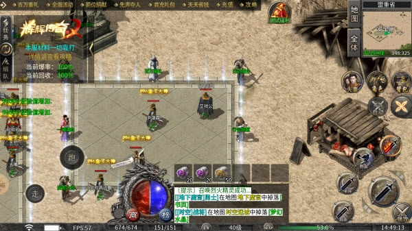 2、玩家能直接进入免费地图打怪,背包具备自动回收功能,打到初始元宝后,可前往“土城合成师”处合成高阶血石,如此便能抵御更高等级的怪物,而爆出的【经验卷】也可以帮助快速提升等级!