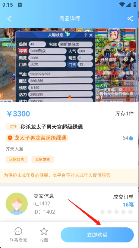 4、用户找到所需游戏账号并进入详情页面后,点击“立即购买”按钮。