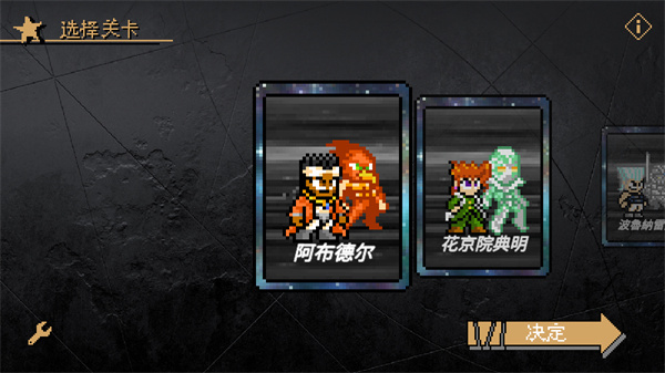 由B站UP主“孟队”独立制作的洛克人同人游戏《JOJO×洛克人》(JOJO×Rockman),采用经典像素风格打造。游戏中收录了炭治郎、空条承太郎等众多知名角色,玩家可任选其一开启关卡挑战。每个关卡的BOSS都拥有独特技能机制,战斗时需灵活躲避敌方攻击才能推进进程。