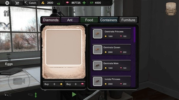 4、在商店里面可以购买到各种类型的蚂蚁。