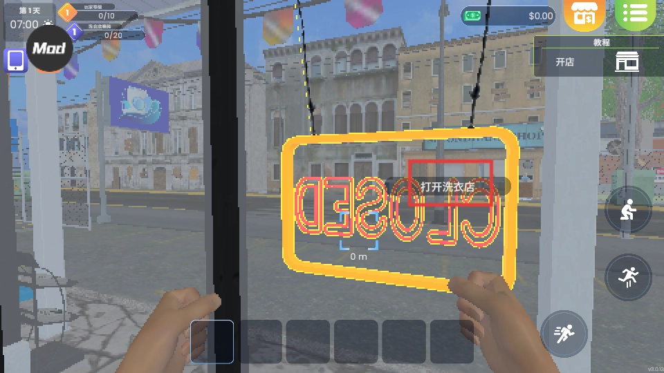 2、操作打开洗衣店,开始营业,迎接顾客。