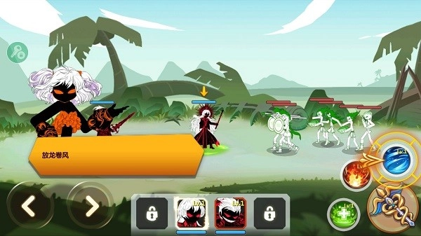 游戏里玩家可以同时让四名火柴人英雄上阵,点击就能切换他们。