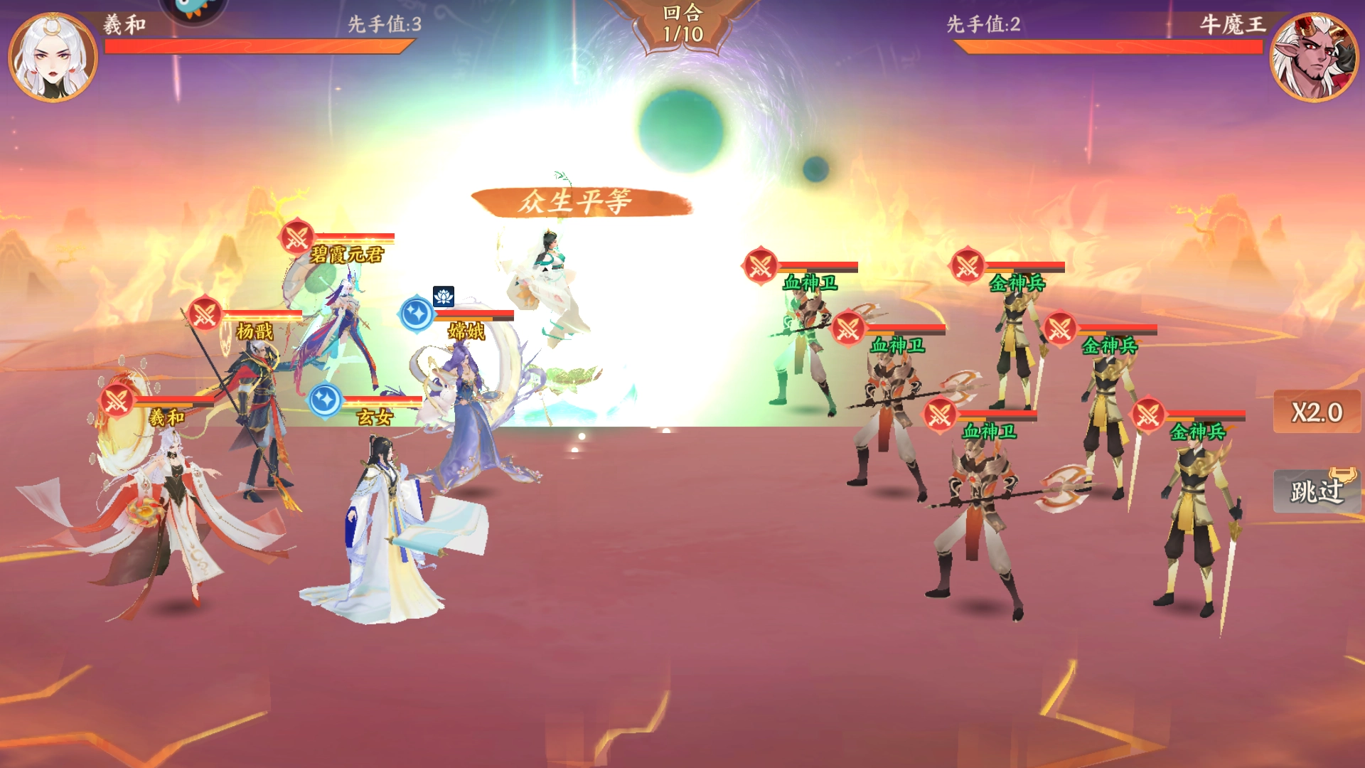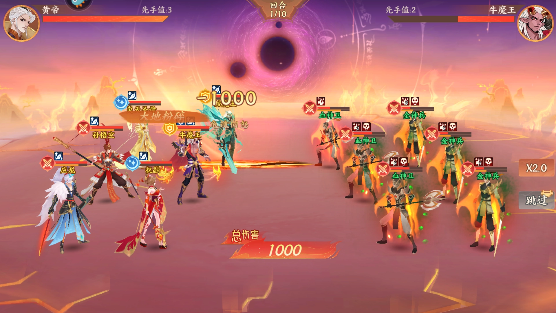 【阵容构建思路】:牛魔王负责群体控制,杨戬凭借快速输出压低敌方血线,并通过连续攻击实现对目标单位的精准点杀;祝融利用技能多次叠加灼烧效果,最后由应龙引爆灼烧状态完成快速收割。