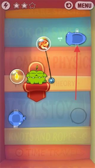 3、关卡中的蓝色气球炮能够吹动泡泡,使泡泡里的糖果发生移动。