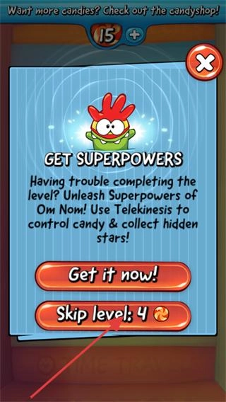当你在某个关卡无法通过时,消耗4个糖果就能借助超能力来协助通关。
