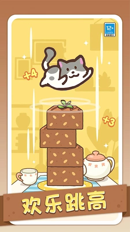 1、轻触屏幕操控萌宠跳跃,准确落在侧边推送的移动方块上,完成叠高操作并获得相应分数。