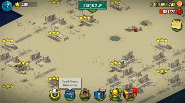2、第二大关,难度上来了,跑尸增多了,拿三星有困难,需要记住僵尸的路线,掌握对投弹兵的使用方法,实在过不去就卖车(损失巴士血量,让卡尔杀僵尸)。