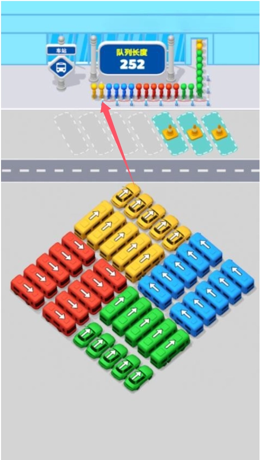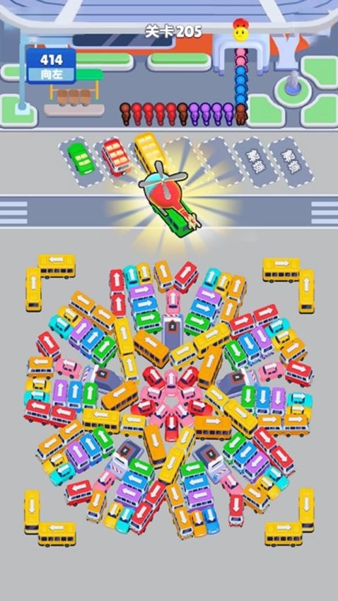2、每次让队伍最前面的小人上车就可以通关啦。