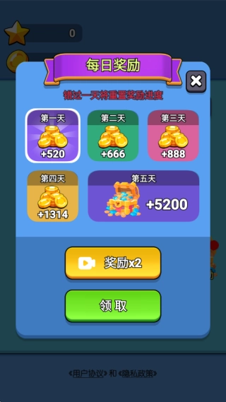 4.如下图所示,成功闯关后即可获取对应的金币奖励。领取完奖励开始下一个关卡的挑战吧!