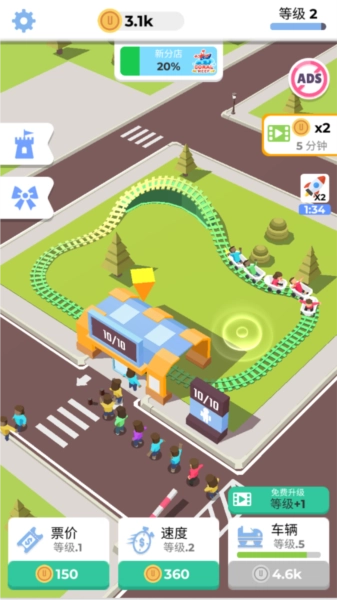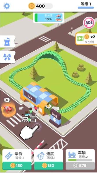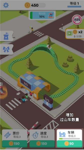 进入游戏后,过山车会自动运转,不过每趟只能搭载一位乘客,因此需要点击来添加更多过山车。