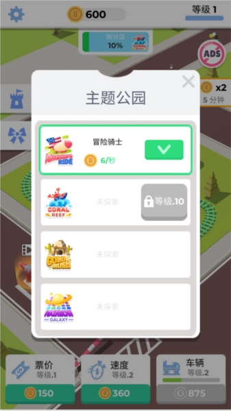 当你的等级足够高,就可以解锁更多公园。