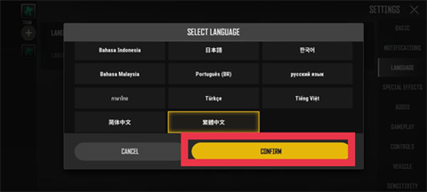 3. 点击“CHANGE LANGUAGE”选项,找到并选择简体中文,然后点击“CDNFIRM”按钮即可完成设置。