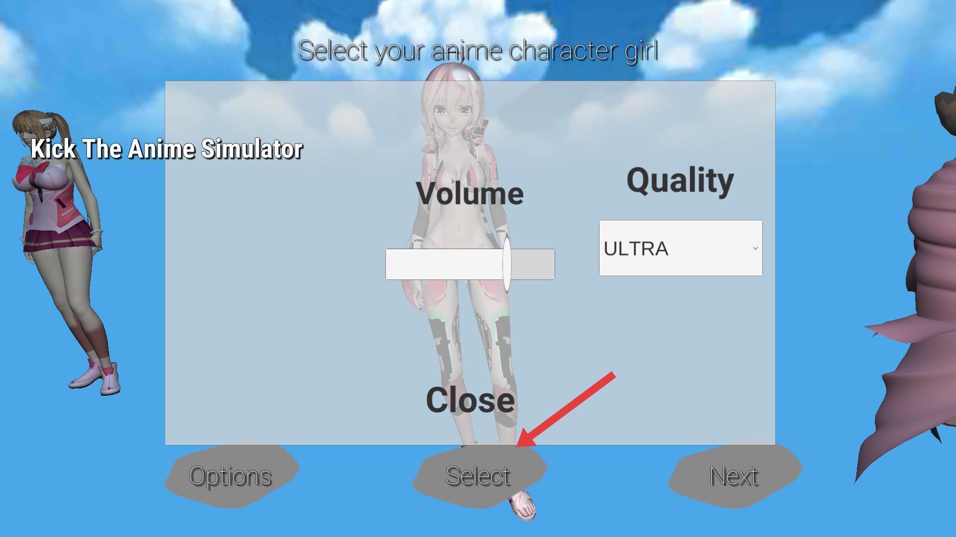 1、进入角色选择界面后,点击Select按钮选定你喜欢的动漫女孩角色,即可开启游戏,后续还能根据自己的喜好随时更换角色。