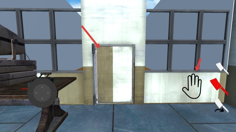 3、进入场景后,按照箭头的提示找到门,靠近门时点击手掌图标进行互动开门,然后探索新的区域,同时注意观察周围可以交互的道具。