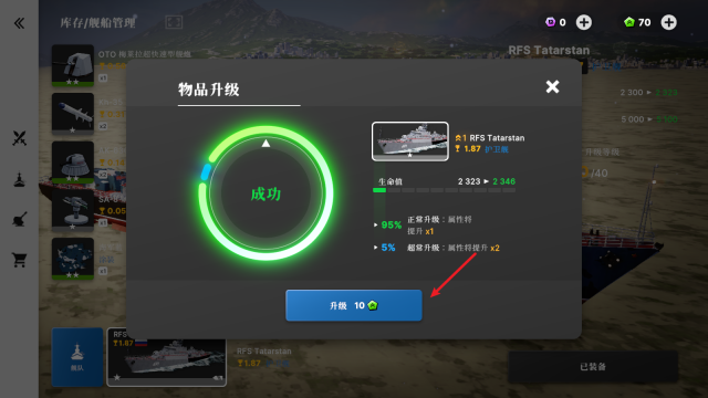 3、随后返回战舰界面,点击升级选项就能提升战舰的性能。