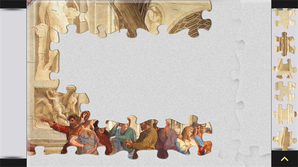 6、现在开始拼图啦,只需把右侧的碎片拖到左边对应的位置就行。建议大家可以先从顶部或者左侧区域入手拼起,这样操作起来会轻松不少哦。