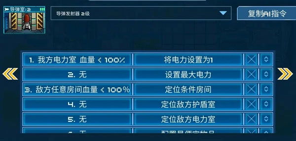 比如这条规则是说,当我方电力房间出现损坏时,要优先减少导弹室的电力供应,以此来尽力保证其他房间能够正常运行。