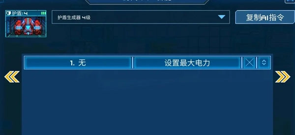 第一条的作用是调节电力输出:当敌方拥有护盾时,仅供给1格电力;敌方无护盾时,则以满电状态运行。这只是一个示例,实际战斗中矿炮通常全程保持满电。不过玩家们可以将这条AI逻辑应用到各类房间上,依据对方护盾的状态来灵活分配电力。