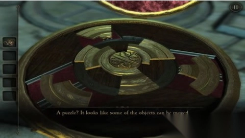 10.打开后呈现出一个圆形转盘,此时需要借助单眼目镜才能看清转盘上的花纹;按照花纹的提示调整好圆盘后,门便会开启,门后是一座塔,至此第一章结束。