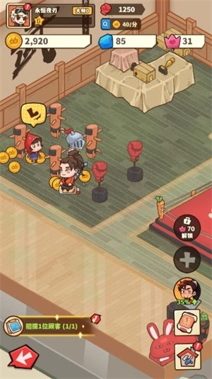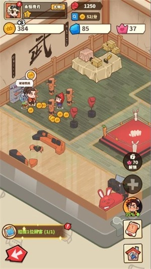 当顾客头上出现黄色图标时,玩家需要去接待他们,完成训练后即可获得金币。