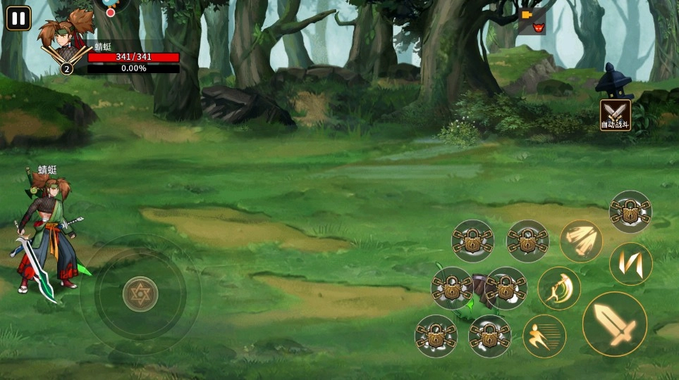 游戏界面左侧的摇杆能操控角色移动,右侧的按键可触发攻击与技能。