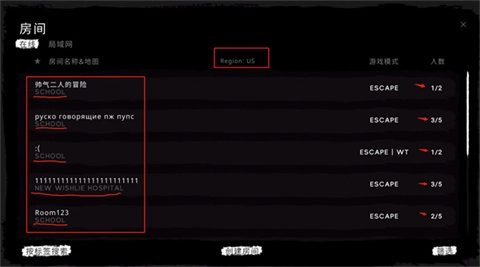点击【房间】选项后,便能看到在线大厅,此时可以任意挑选心仪的房间进入。由于这款游戏的房间都没有设置密码,所有展示出来的房间都是开放可加入的。