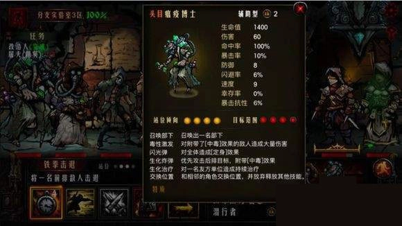 第一个BOSS登场啦!长按BOSS即可查看其技能与状态属性,技能大多以用毒为主。
